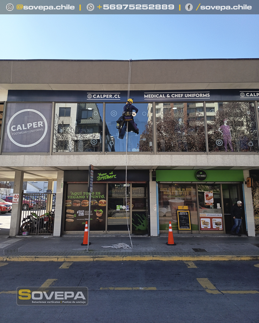 Limpieza de vidrios en altura.