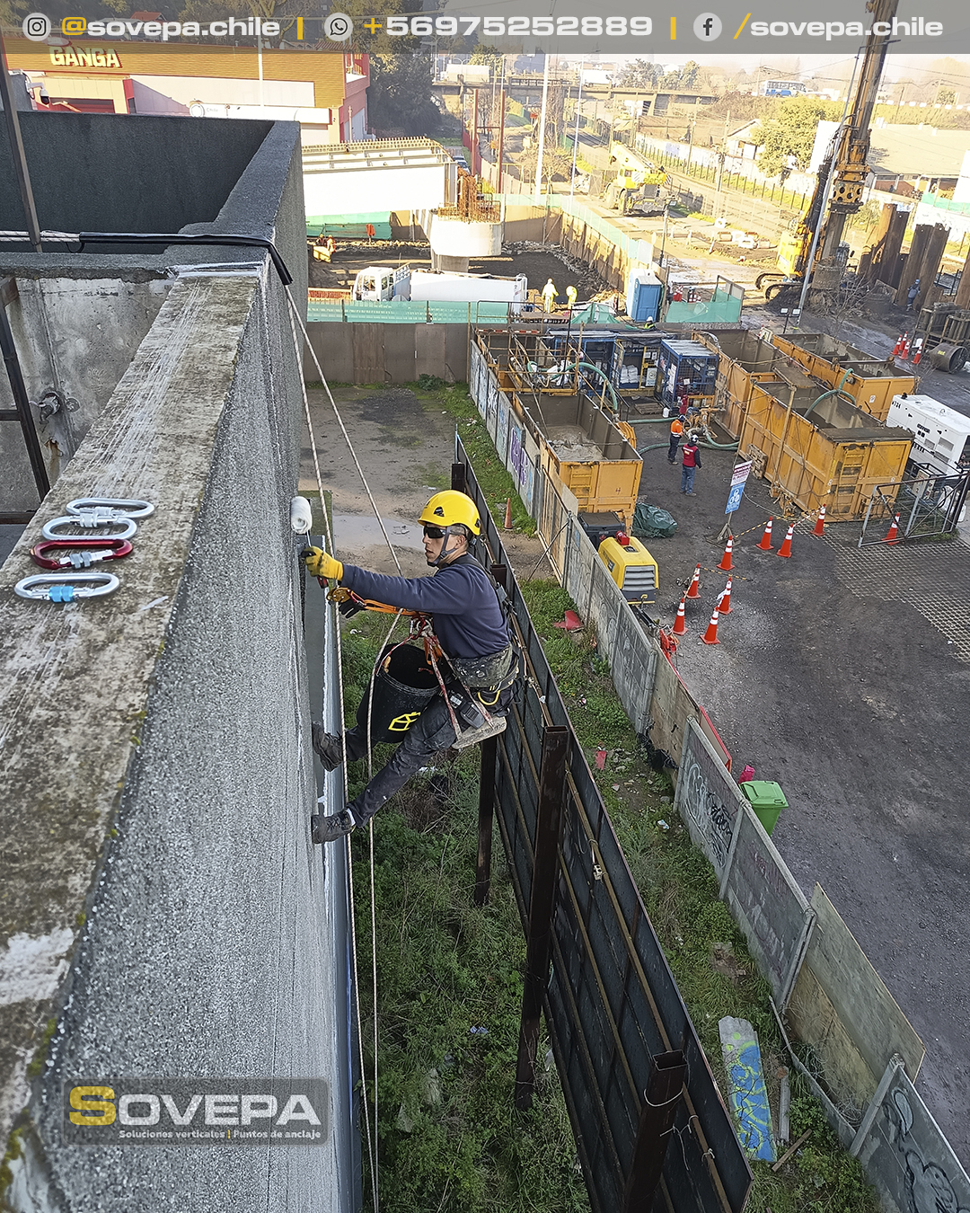 Instalación de 6 líneas de vida verticales de 70 mts. para trabajo de montaje de ascensores.