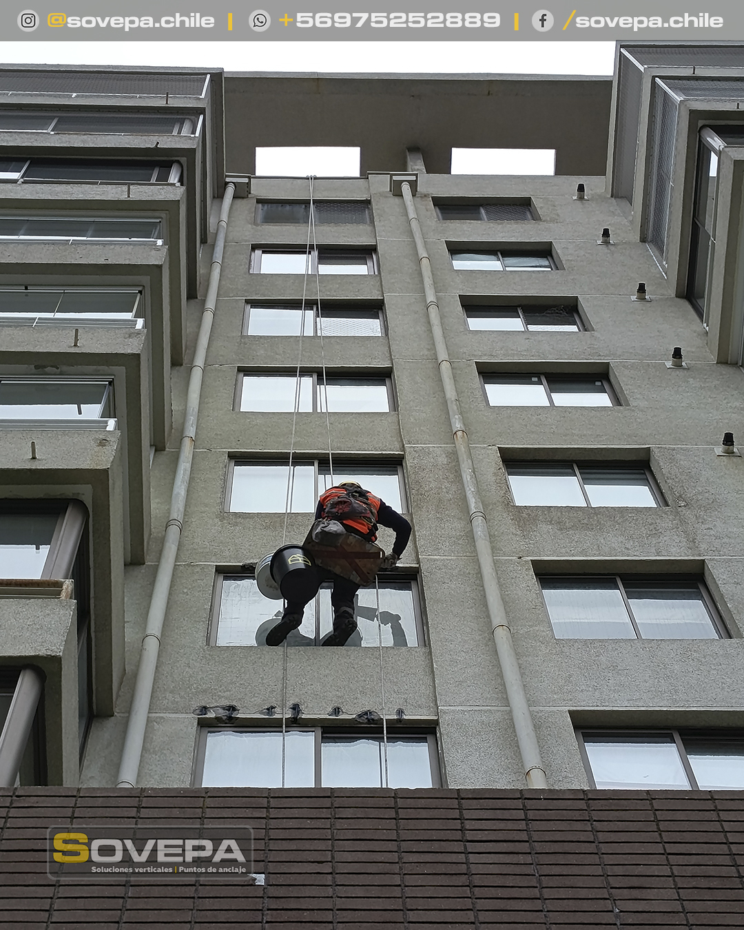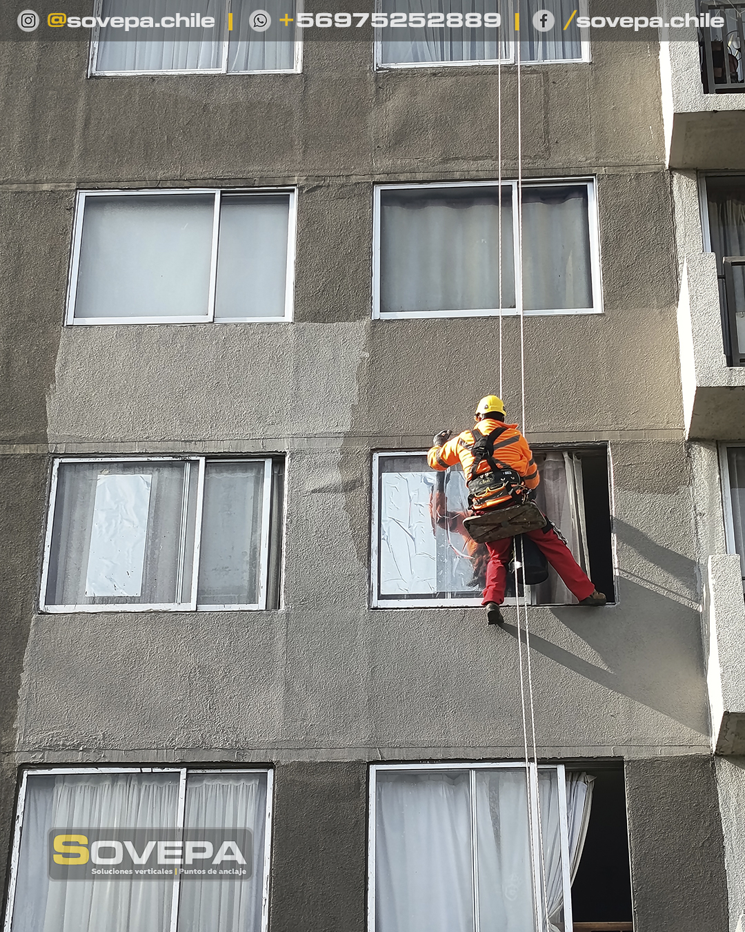 Instalación sistema de anclajes, reparación vano ventanas y aplicación de pintura.